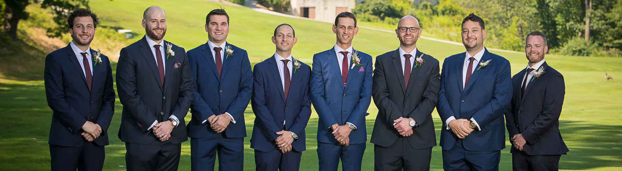 Ensuring that every member of your wedding party looks as great as you do is our priority. - Groomsmens Group Suit Alterations